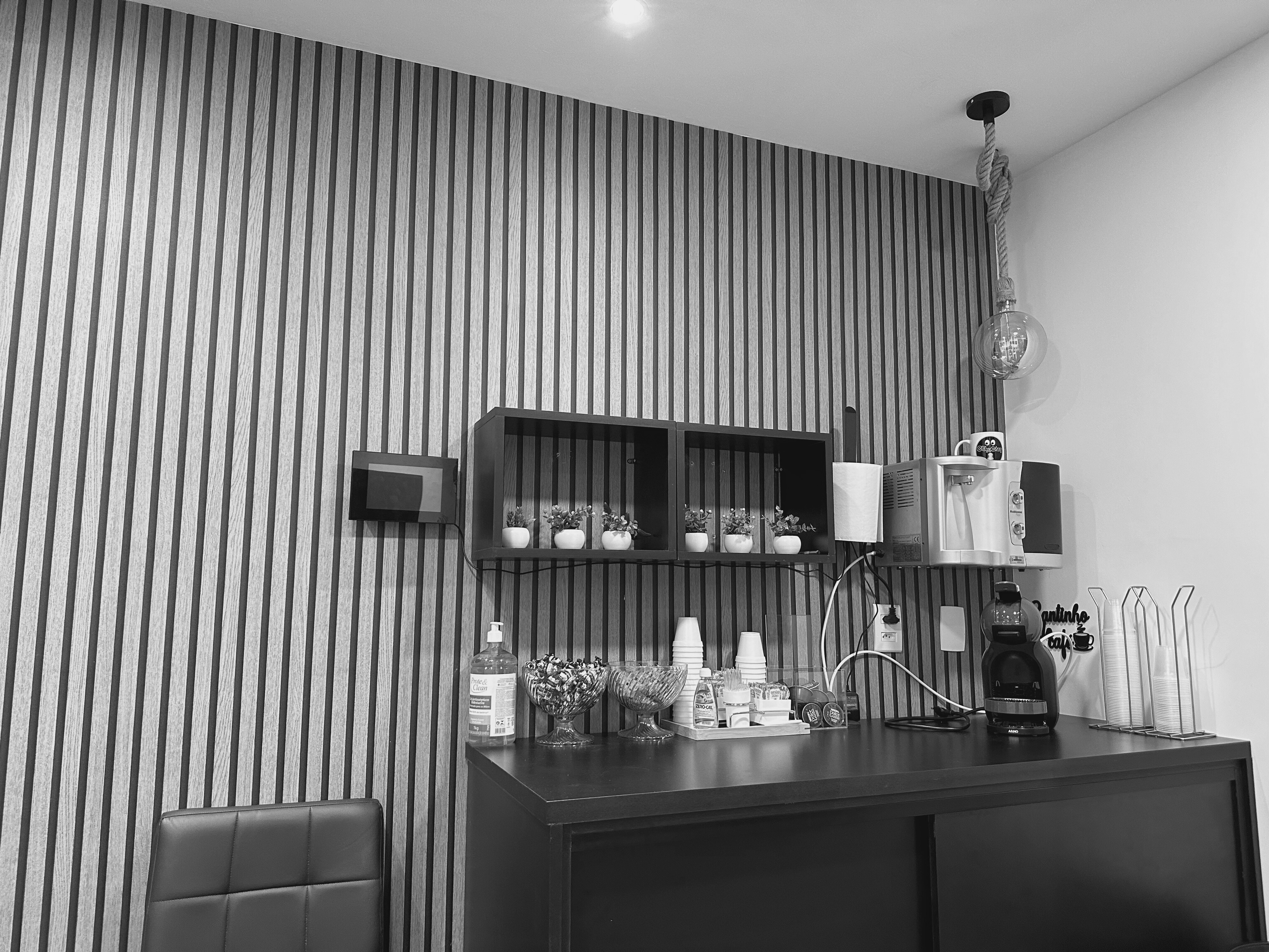 café, água, wi-fi, etc.